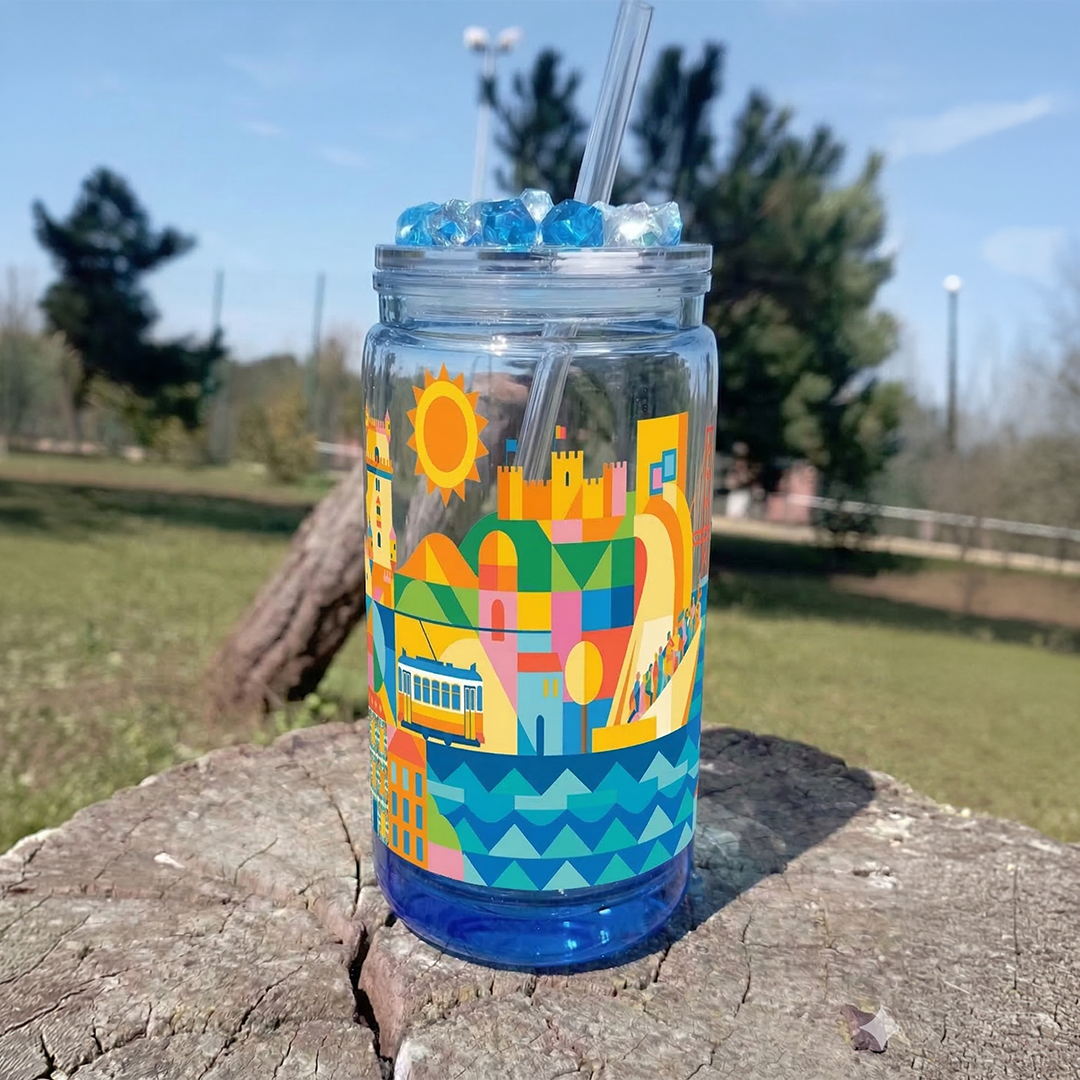 Este copo de acrílico único combina beleza com um design deslumbrante que parece uma bola de neve em movimento.